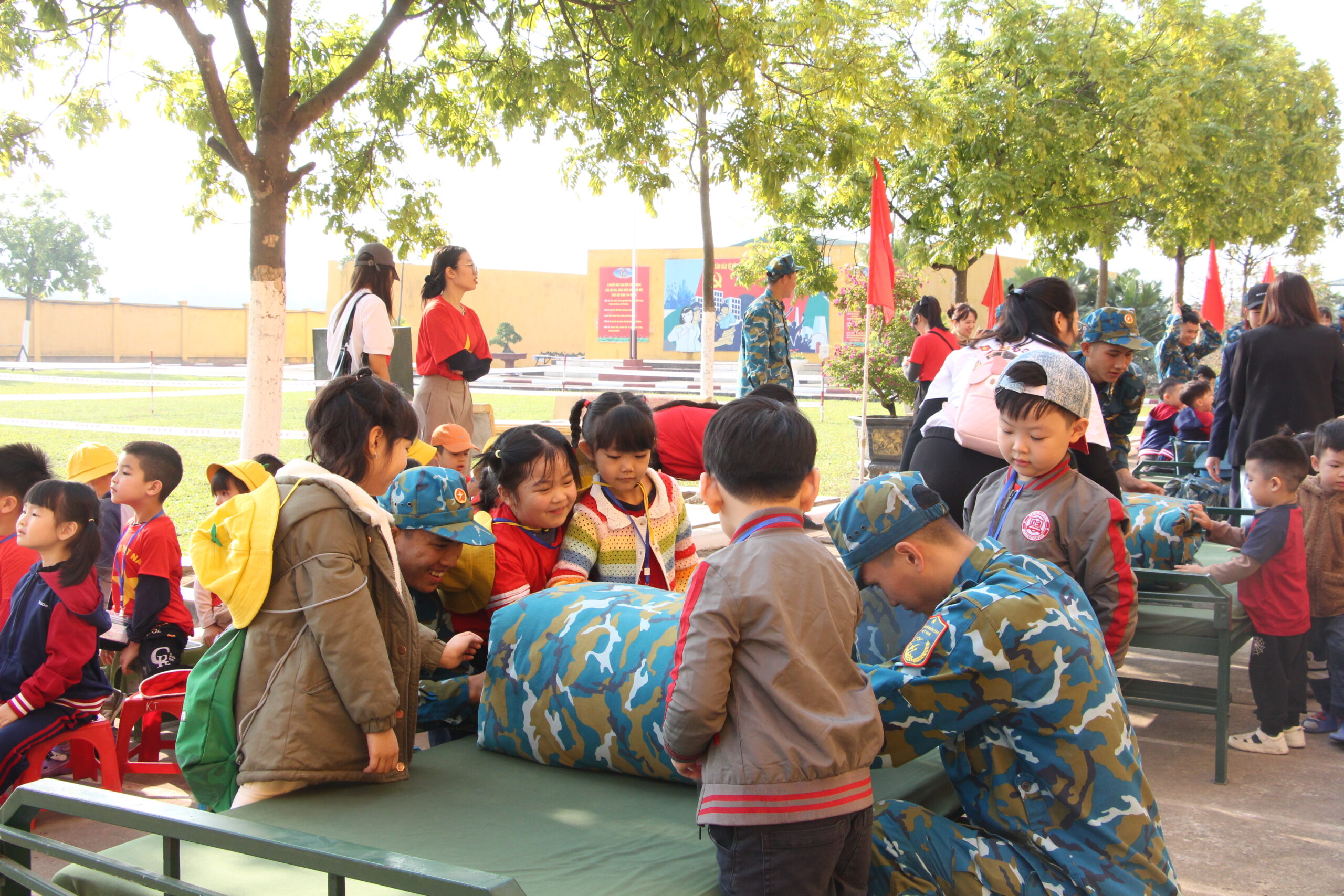 Trong vai những “chiến sĩ nhí”, các con được mở rộng hiểu biết về môi trường quân ngũ, học những kỹ năng giản dị nhưng rất kỷ luật như gấp chăn gọn gàng, được xem các chú bộ đội biểu diễn võ thuật đầy mạnh mẽ, tham gia kéo co rộn ràng tiếng cười và còn tự tin hát múa tặng các cô chú bộ đội với những bài hát quen thuộc như “Chúng tôi là chiến sĩ”…